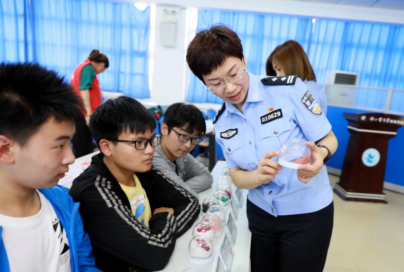 圖② 王霞教學(xué)生辨別毒品。
