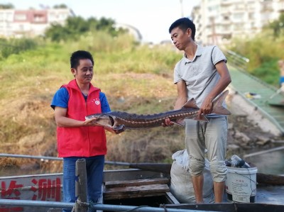 3月28日凌晨3點30分,湖北武漢,水利部中國科學(xué)院水工程生態(tài)研究所的科研人員們忙得滿頭是汗,小心翼翼地打撈著養(yǎng)殖池內(nèi)的“中華鱘寶寶”。這一天是第二個“中華鱘保護日”,他們精心繁殖培育數(shù)月的5萬尾子2.5代中華鱘魚苗將被放流長江。