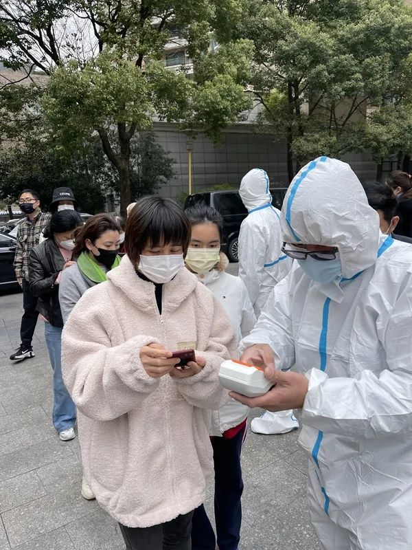 “許多外籍住戶對(duì)我們的工作評(píng)價(jià)非常高,因?yàn)樗麄儚臎](méi)見(jiàn)過(guò)這樣一支有力的隊(duì)伍。”毛巳春表示,從凌晨接到核酸篩查的任務(wù),短短的幾個(gè)小時(shí),從無(wú)到有,居委與物業(yè)就完成了臨時(shí)的檢驗(yàn)棚的搭建,一米線設(shè)置、桌椅板凳、引導(dǎo)標(biāo)志、動(dòng)線安排……一支志愿者隊(duì)伍也誕生了。
