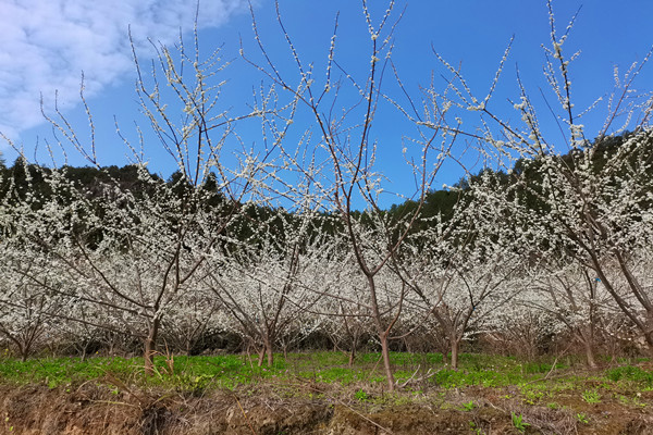 百畝脆紅李基地鮮花怒放。周建花攝