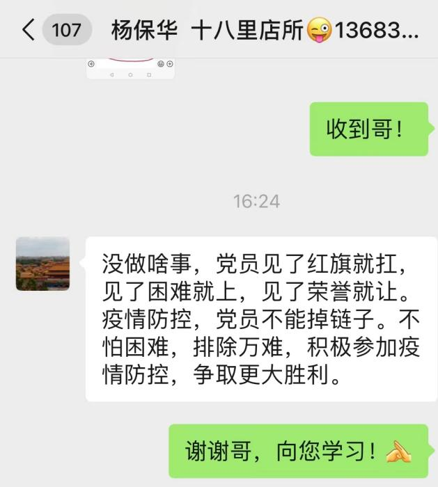 擁有25年軍旅生涯、參加過抗洪搶險任務(wù)的楊保華同志在抗“疫”一線常這樣說:“作為一名退役軍人,就是要見了紅旗就扛,見了困難就上,見了榮譽就讓”,而他也是這樣做的。