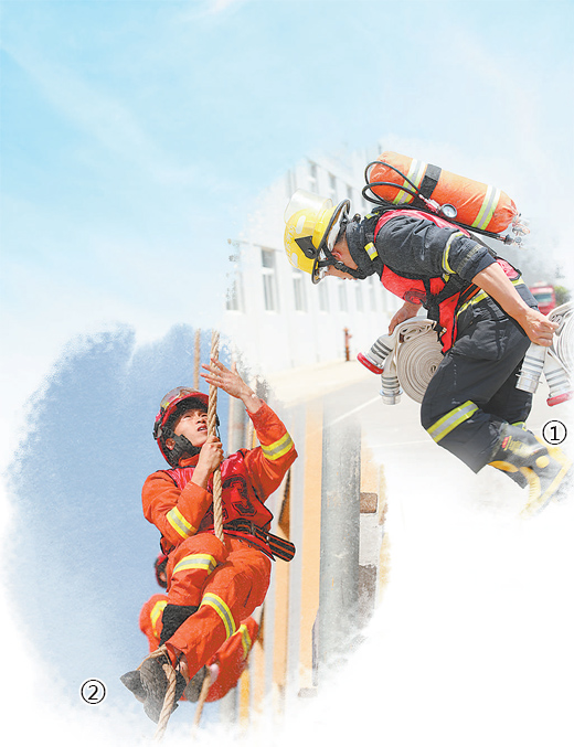 圖①、圖②為江蘇鹽城消防救援支隊(duì)西環(huán)路特勤站特勤隊(duì)員工作訓(xùn)練場(chǎng)景。胡萬(wàn)春 曹兆龍攝影報(bào)道