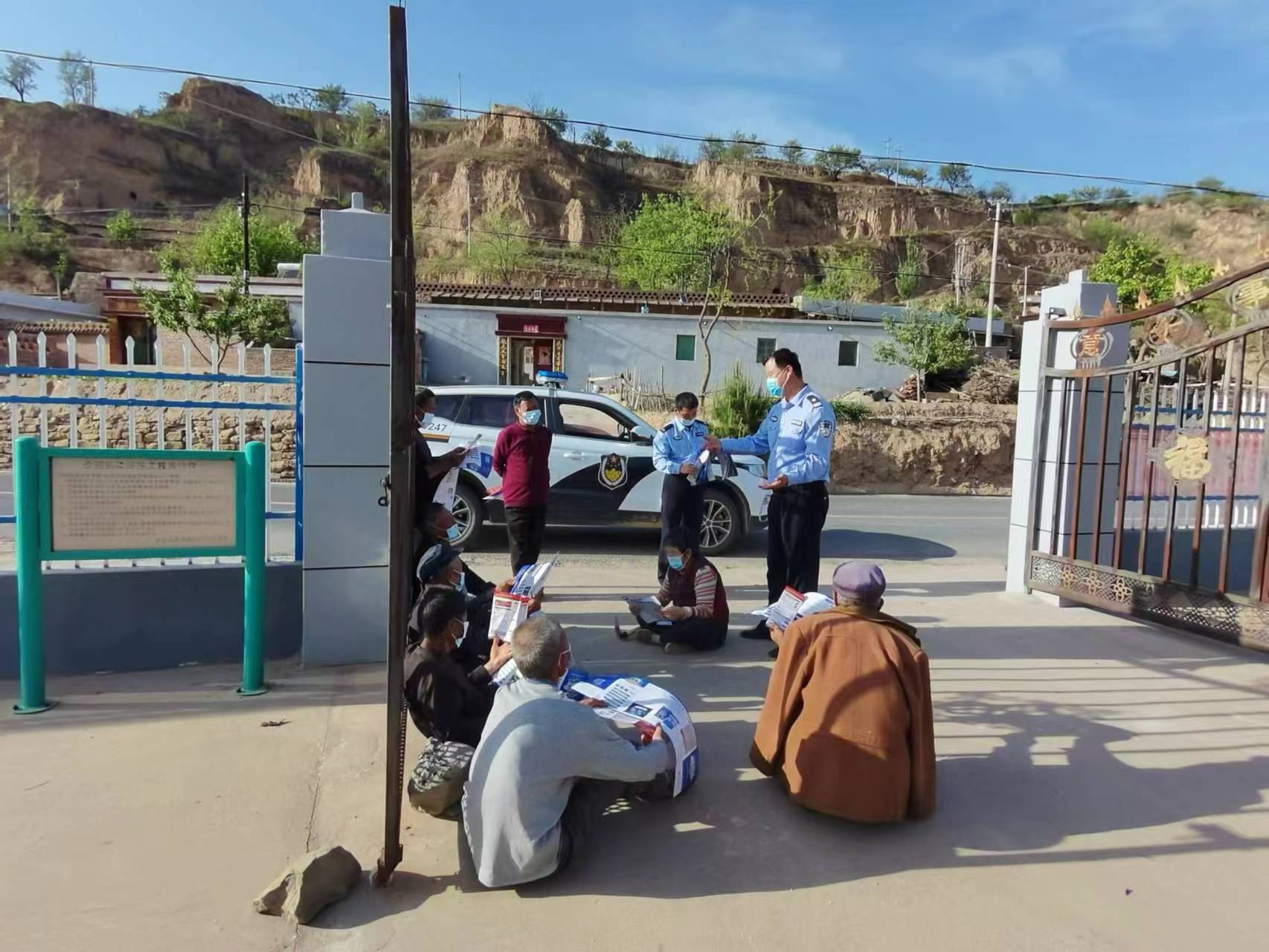 圖為興隆寺派出所民警深入轄區(qū)向村民發(fā)放反電信詐騙宣傳材料。