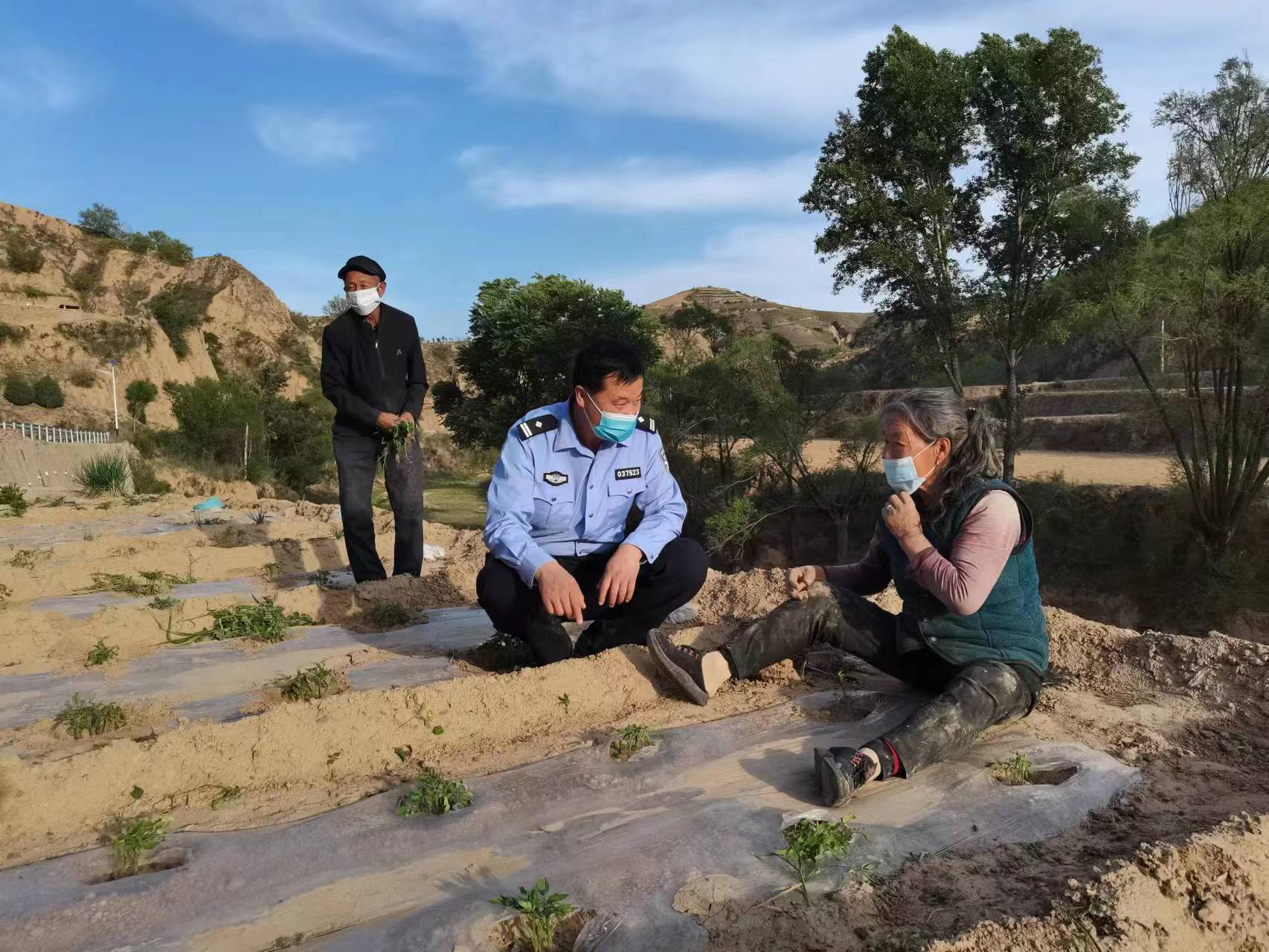 圖為興隆寺派出所民警在田間走訪社情民意。