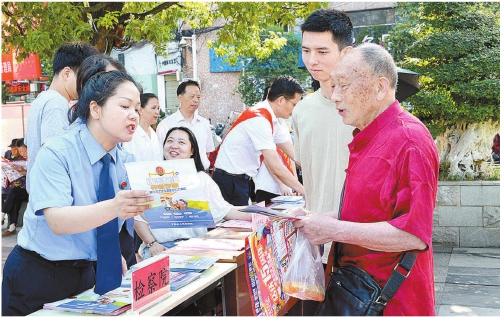 6月15日,湖北省羅田縣檢察院干警來到該縣人民廣場開展打擊整治養(yǎng)老詐騙宣傳活動?;顒蝇F(xiàn)場,檢察干警圍繞養(yǎng)老詐騙的危害性、常見詐騙手段以及識別防范養(yǎng)老詐騙方法等內(nèi)容開展宣傳,引導(dǎo)群眾樹立防范意識,守好自己的養(yǎng)老錢。記者戴小巍 通訊員王章丁 攝
