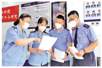 5月5日一大早,新華街道市場(chǎng)監(jiān)管所黨支部書記、所長(zhǎng)王麗俠接到市場(chǎng)監(jiān)管所所在小區(qū)實(shí)行封控管理的通知。除了要第一時(shí)間通知還在上班路上的同志們掉頭回家、嚴(yán)格按照疫情防控要求向社區(qū)報(bào)告的同時(shí),她還想到所里的下一步工作該如何進(jìn)行。除了市場(chǎng)主體登記、日常執(zhí)法檢查、經(jīng)濟(jì)違法行為查處和維護(hù)消費(fèi)者合法權(quán)益等日常工作,進(jìn)口冷鏈?zhǔn)称窓z查,生活必需品價(jià)格穩(wěn)定以及藥店、有形市場(chǎng)、“五類”之外市場(chǎng)主體的疫情防控一刻也不能停歇,更容不得出半點(diǎn)差錯(cuò)。封控期間,這些工作一項(xiàng)也不能停,都得有人做。