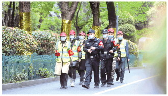 圖① 謝經(jīng)祿帶領(lǐng)“平安社區(qū)”警民聯(lián)防志愿隊(duì)在小區(qū)巡邏。