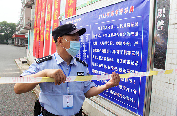“考試結(jié)束,請考生停止作答。”6月9日上午11時許,隨著考場鈴聲響起,2022年高考最后一場考試結(jié)束了。在護送學(xué)生和家長有序離開后,老吳也用汗水和堅守交出了從警生涯最后一次護航高考的平安答卷。
