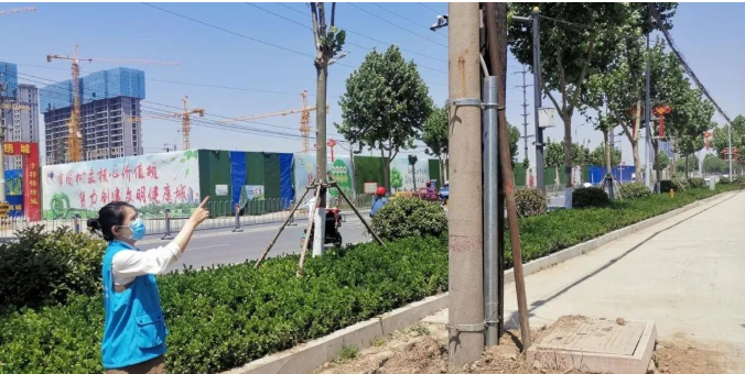 5月17日,居民反映的電線桿傾斜問題已解決,劉沙進(jìn)行核查。 李大利 攝