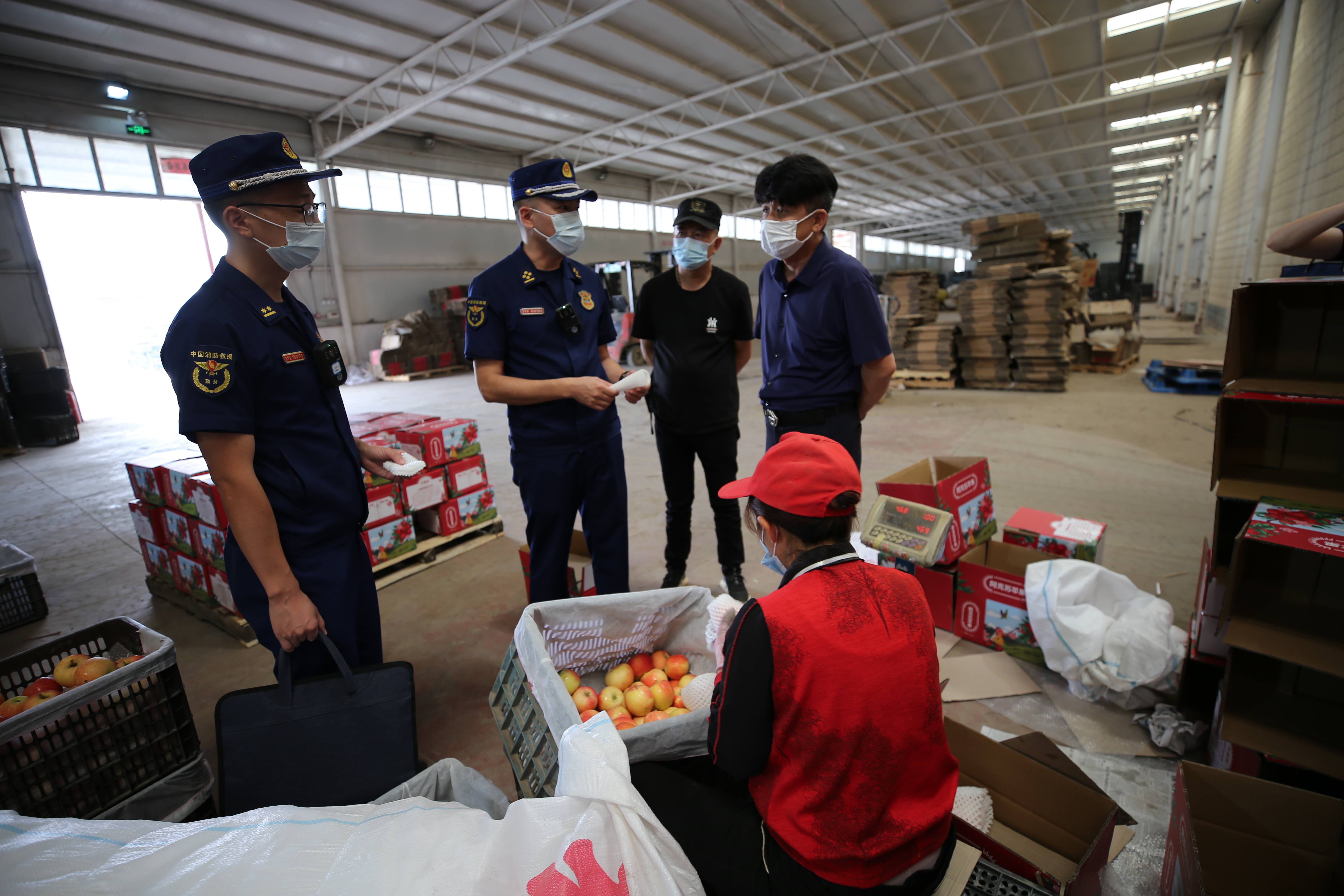 隨著新疆阿克蘇地區(qū)果品成熟,各類涉果企業(yè)也隨之進入加工、生產(chǎn)旺季。為切實消除火災隱患,阿克蘇地區(qū)消防救援支隊聯(lián)合轄區(qū)公安、工商等部門組成聯(lián)合檢查組,開展涉果企業(yè)消防安全專項整治行動。圖為8月31日,阿克蘇地區(qū)消防救援支隊消防監(jiān)督員在轄區(qū)涉果企業(yè)開展消防安全隱患排查。