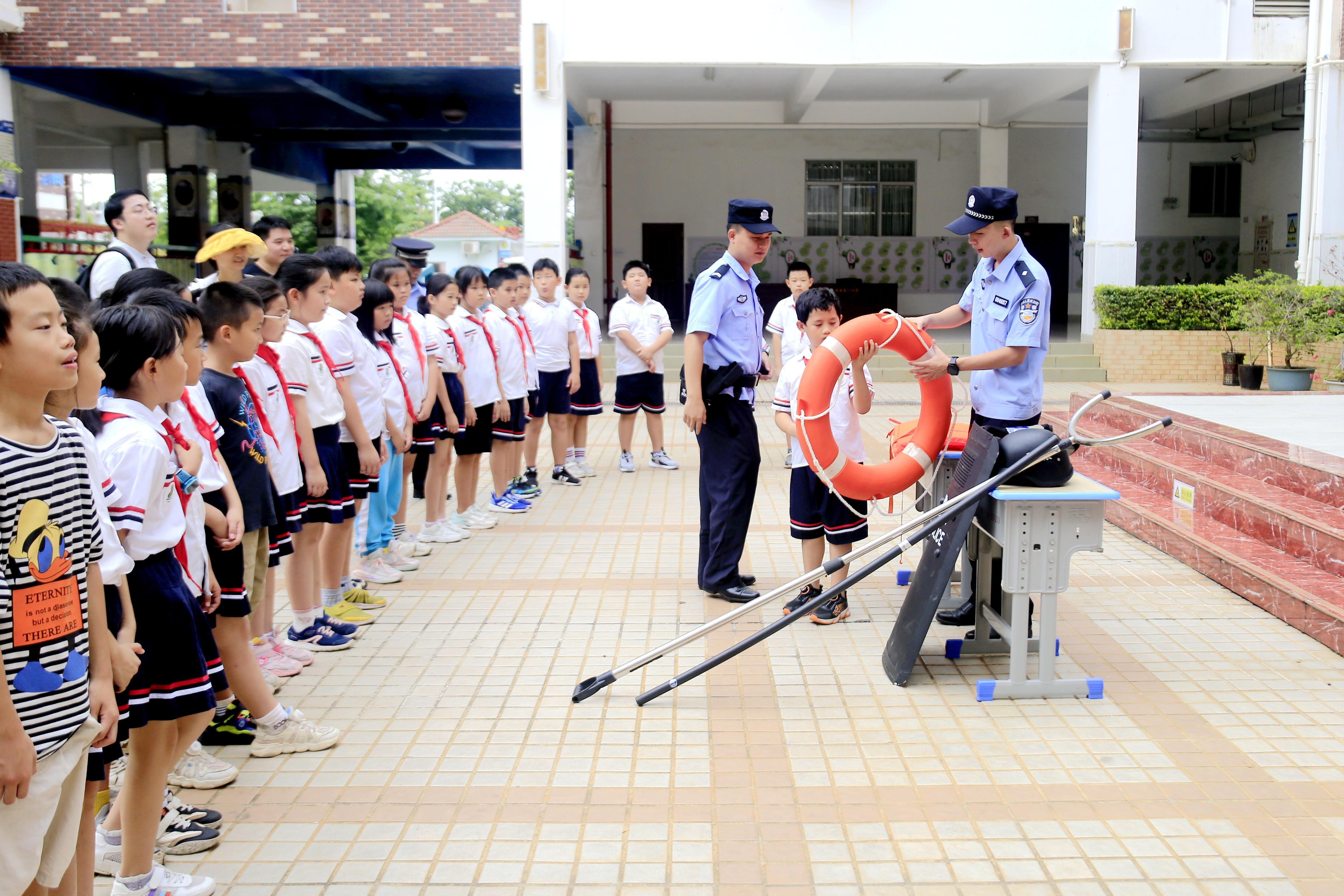 暑期到來(lái)之際,海南省儋州市公安局洋浦經(jīng)濟(jì)開發(fā)區(qū)分局新英灣海岸派出所民警結(jié)合全省未成年人“護(hù)苗”專項(xiàng)行動(dòng)和“安全生產(chǎn)月”活動(dòng),精心準(zhǔn)備,到洋浦第一小學(xué)開展防溺水安全宣傳教育,為師生們送上暑期防溺水安全知識(shí)“大禮包”。圖為民警向同學(xué)們講解防溺水知識(shí)。