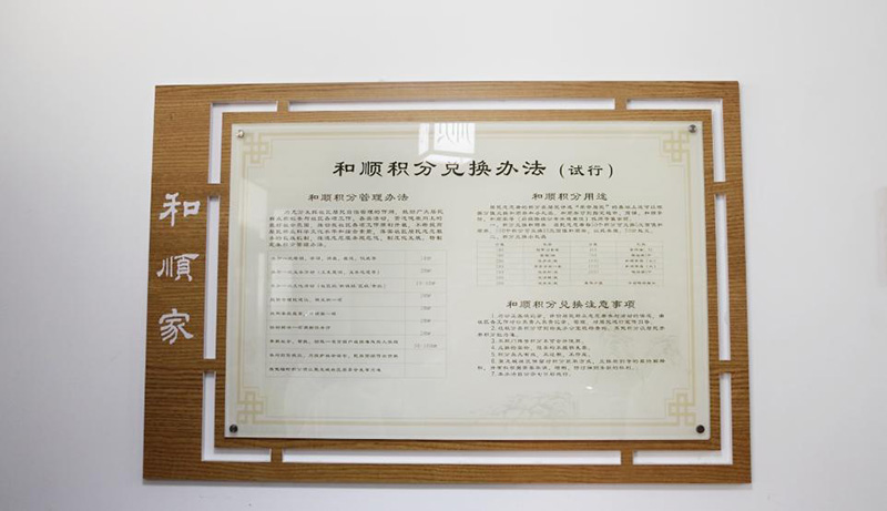 回龍壩鎮(zhèn)聚龍城社區(qū)“和順茶館”營(yíng)業(yè)至今,共收到民情民意800余條,解決群眾身邊事480件,舉辦百姓議事會(huì)50場(chǎng),切實(shí)踐行了聽民聲、知民心、解民困。同時(shí),在茶館的“和順家”還開設(shè)了一個(gè)積分兌換超市,設(shè)計(jì)專用于基層治理積分兌換的“和順券”,群眾每參與一次義務(wù)勞動(dòng),可積20分;協(xié)助解決一項(xiàng)調(diào)解任務(wù),可積20分;幫扶一名貧困戶或困難家庭,可積20分……“我真沒想到,這次能兌換這么多獎(jiǎng)品,這些都是生活必需品,不用花錢買了……”居民胡代珍拿著一大包生活用品,笑呵呵地說,這是她積極參與社區(qū)公益活動(dòng)獲得的積分兌換的。