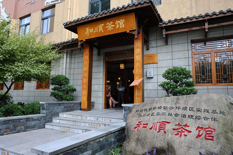 茶館在川渝地區(qū)是最常見的休閑去處,在重慶市沙坪壩區(qū)回龍壩鎮(zhèn)聚龍城社區(qū),一間非民辦“和順茶館”成為當(dāng)?shù)匕傩盏男聦櫍撼撕炔枇奶?,茶館還融合了各職能部門下沉社區(qū)的十幾個(gè)辦公室功能。政策宣講、糾紛調(diào)解、法律咨詢……一杯清茶間,社區(qū)里那些難辦、急辦的事總能得到妥善解決。