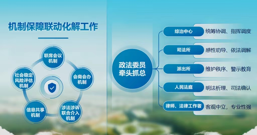 “多調(diào)聯(lián)動(dòng)、‘三官一律’進(jìn)網(wǎng)格、警格網(wǎng)格融合、人民調(diào)解介入信訪、訴前調(diào)解”,多年來(lái)政法系統(tǒng)各部門依托網(wǎng)格化建設(shè)履行自身職能發(fā)揮各自優(yōu)勢(shì),或獨(dú)當(dāng)一面、或互相配合化解矛盾糾紛,探索實(shí)踐的各種工作做法取得了成效。