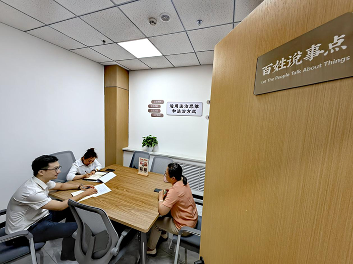 8月24日,在烏魯木齊市沙依巴克區(qū)“天山楓橋”綜合法務(wù)區(qū)“百姓說(shuō)事點(diǎn)”,工作人員正在記錄轄區(qū)群眾反映的困難訴求及意見(jiàn)建議。法治日?qǐng)?bào)全媒體記者 潘從武 攝