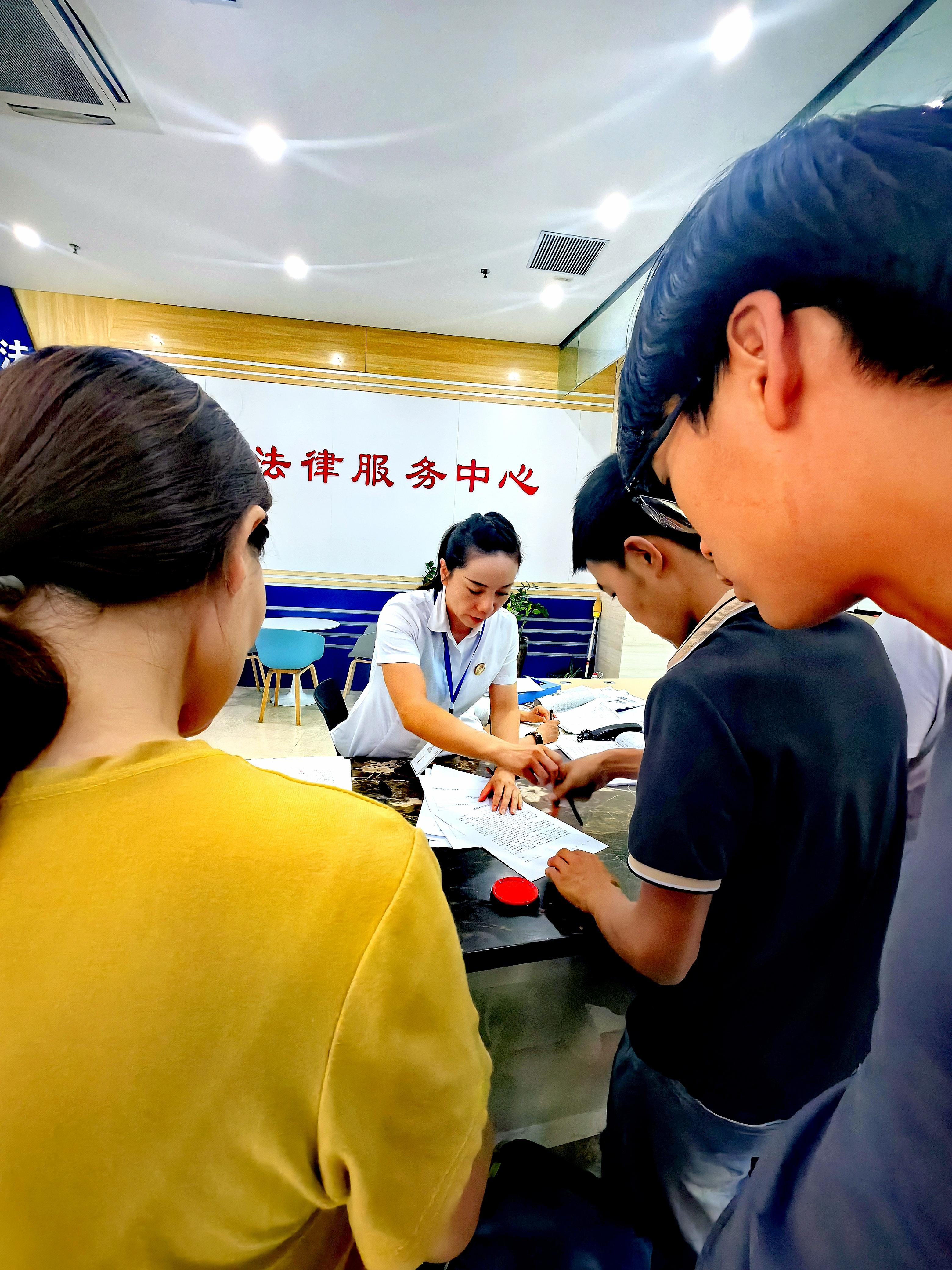 圖為8月26日,在新疆昌吉市“和合昌吉”法務(wù)中心的“賦強公證”窗口,公證人員正在給申請人辦理“賦強公證”手續(xù)。記者 潘從武 攝