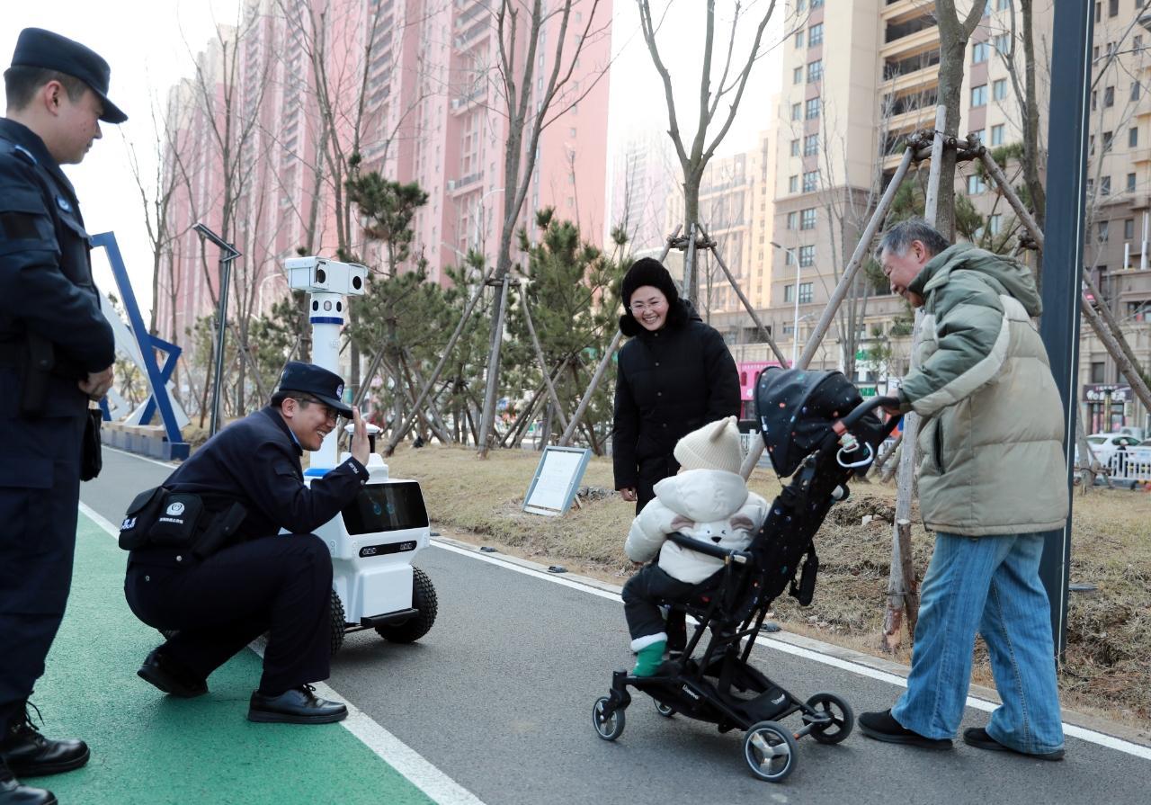 近日,位于山東省煙臺市高新技術(shù)產(chǎn)業(yè)開發(fā)區(qū)的科教基地警務站正式啟用,警務站融合了派出所、特巡警等多警種力量,配置無人機、巡邏機器人、多功能自助服務一體機等,24小時全天候開展治安管控和便民服務。圖為警務站民輔警和巡邏機器人共同巡邏時,與轄區(qū)群眾互動。