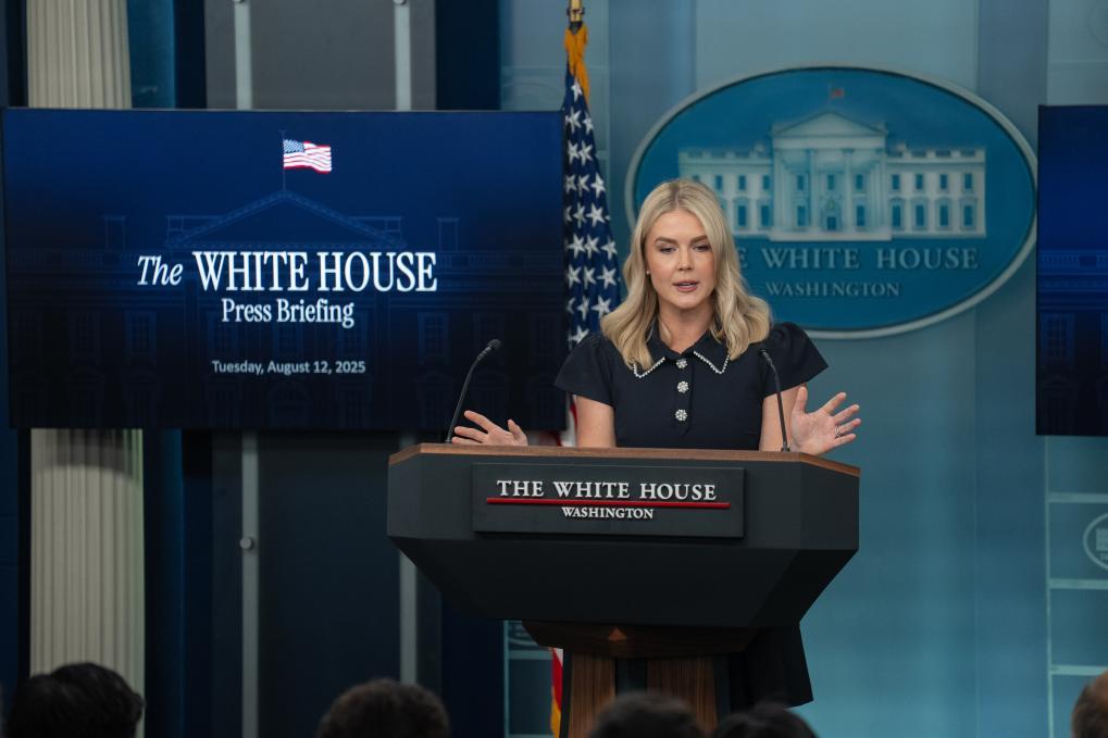 8月12日,在美國首都華盛頓白宮,白宮新聞秘書萊維特出席記者會(huì)。新華社記者胡友松攝