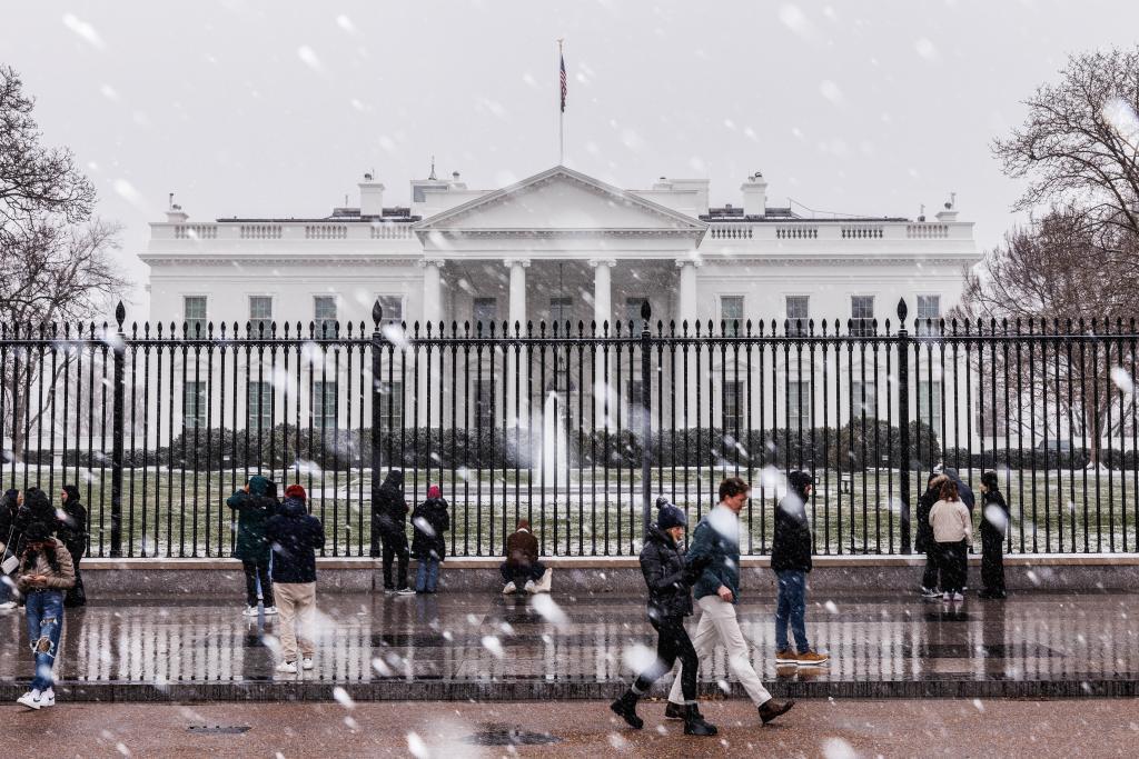 這是2024年1月15日在美國首都華盛頓拍攝的雪中的白宮。新華社發(fā)(阿倫攝)