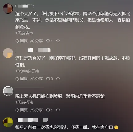 即使沒有拍到隱私畫面,無人機懸停窗外這一行為本身是否構(gòu)成侵權(quán)?多數(shù)網(wǎng)友認為,家是最私密的場所,無人機貼近窗戶飛行打破了居民的心理安全防線,其行為本身就帶來了被窺視的恐懼感和心理不適。
