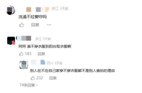 部分網(wǎng)友質(zhì)疑“洗澡為何不拉窗簾”,但更多聲音認為,這種質(zhì)疑是典型的“受害者有罪論”。家本身應(yīng)是一個無需設(shè)防的空間,享受陽光和通風(fēng)是居民的基本權(quán)利,不能因為無人機的潛在威脅而犧牲在家的自由與安寧。
