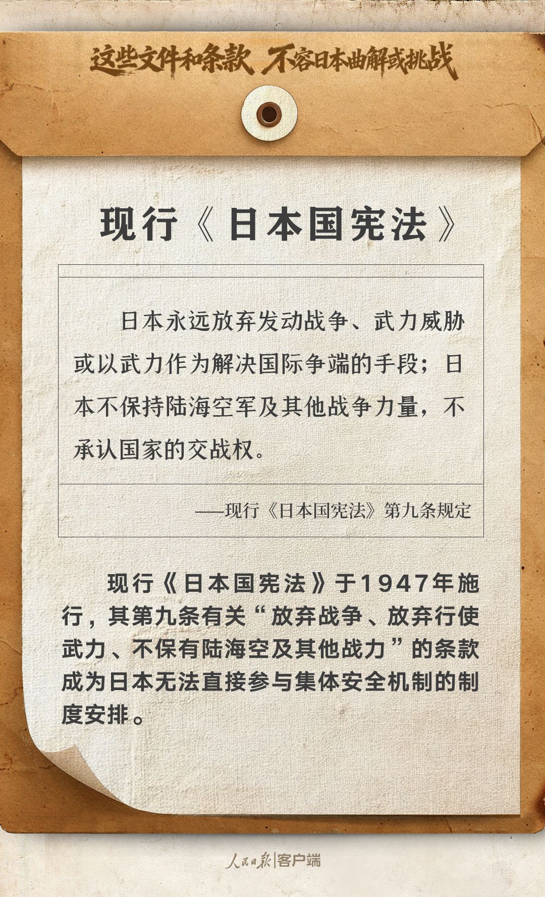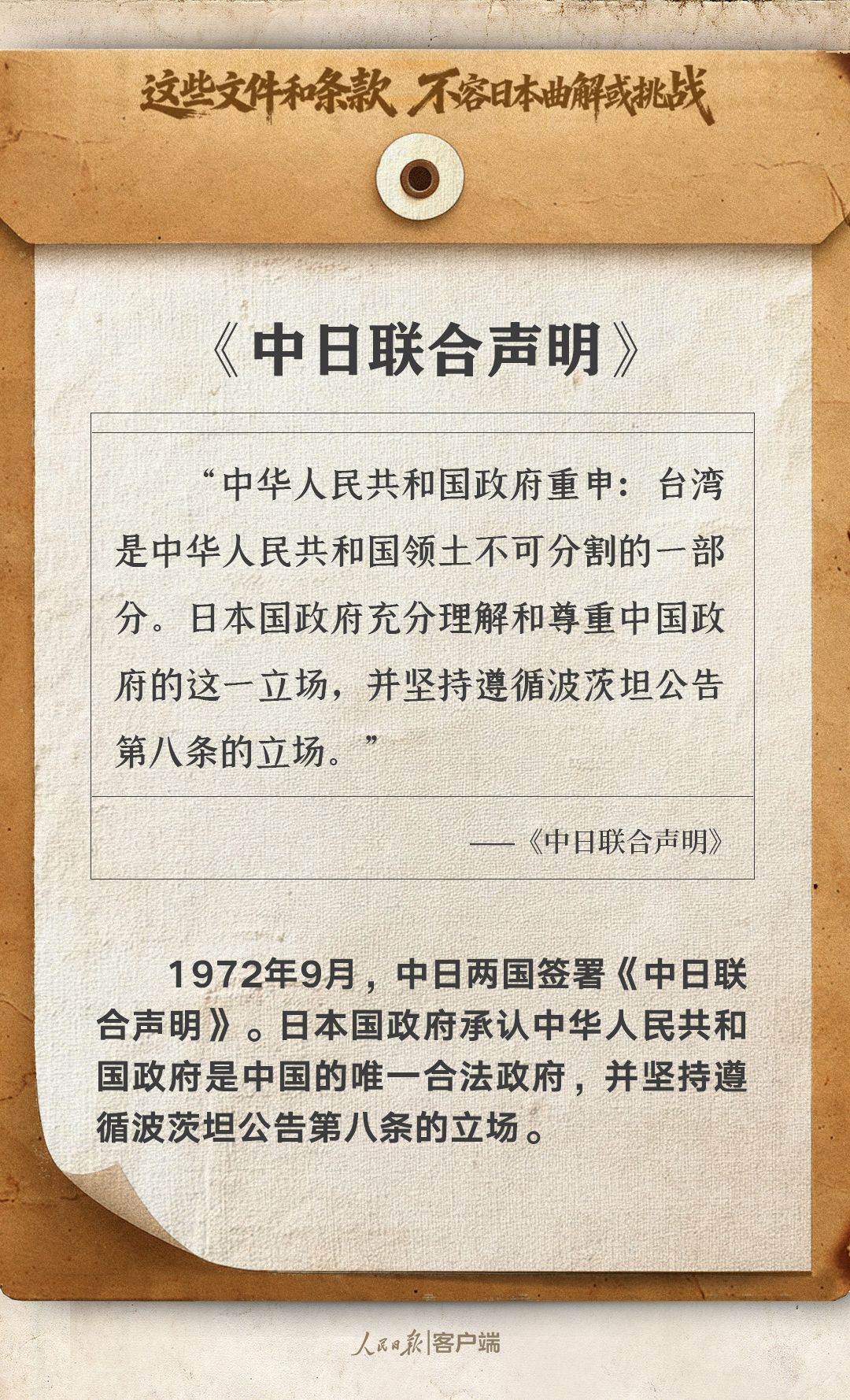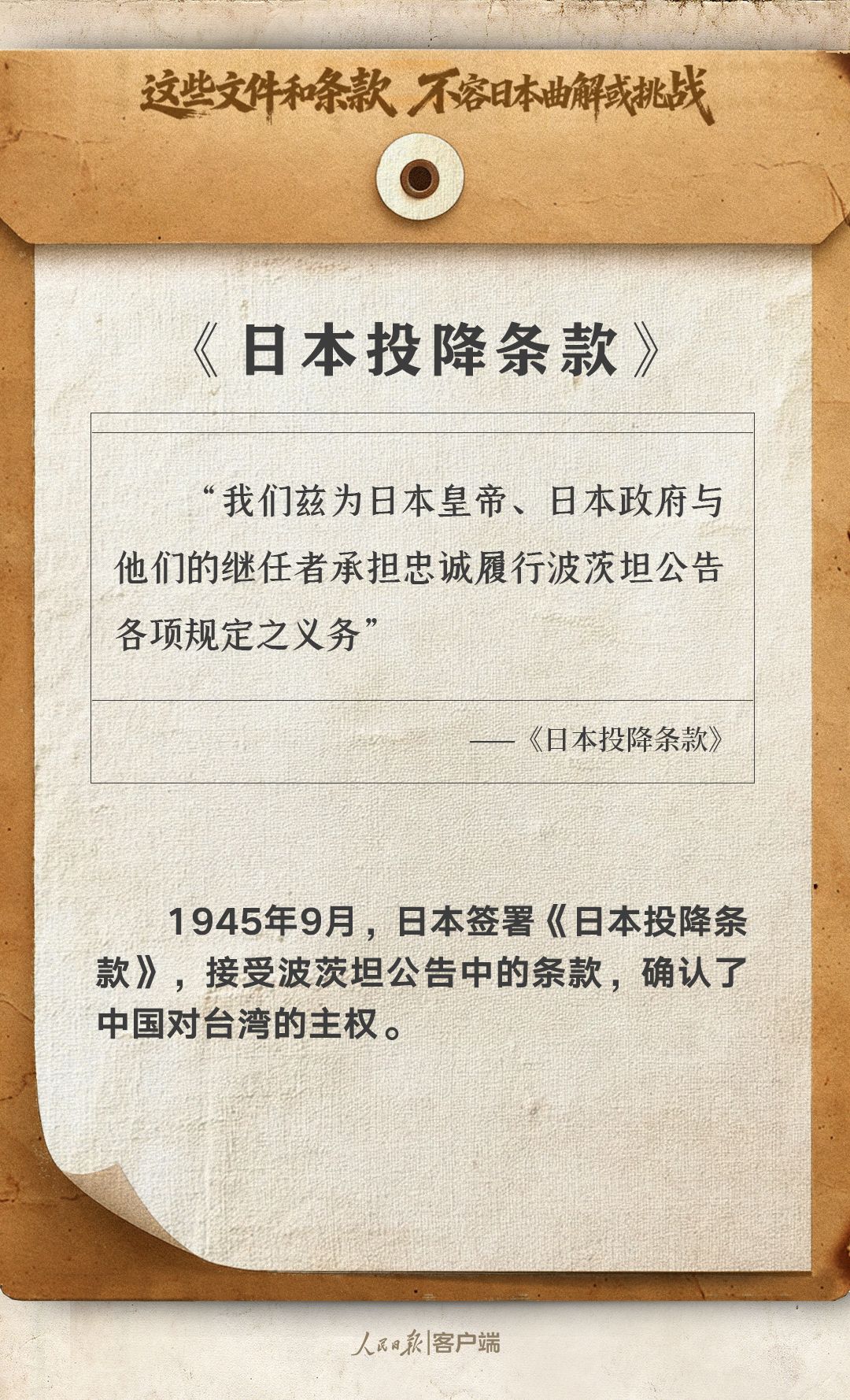 這些文件和條款,不容日本曲解或挑戰(zhàn)