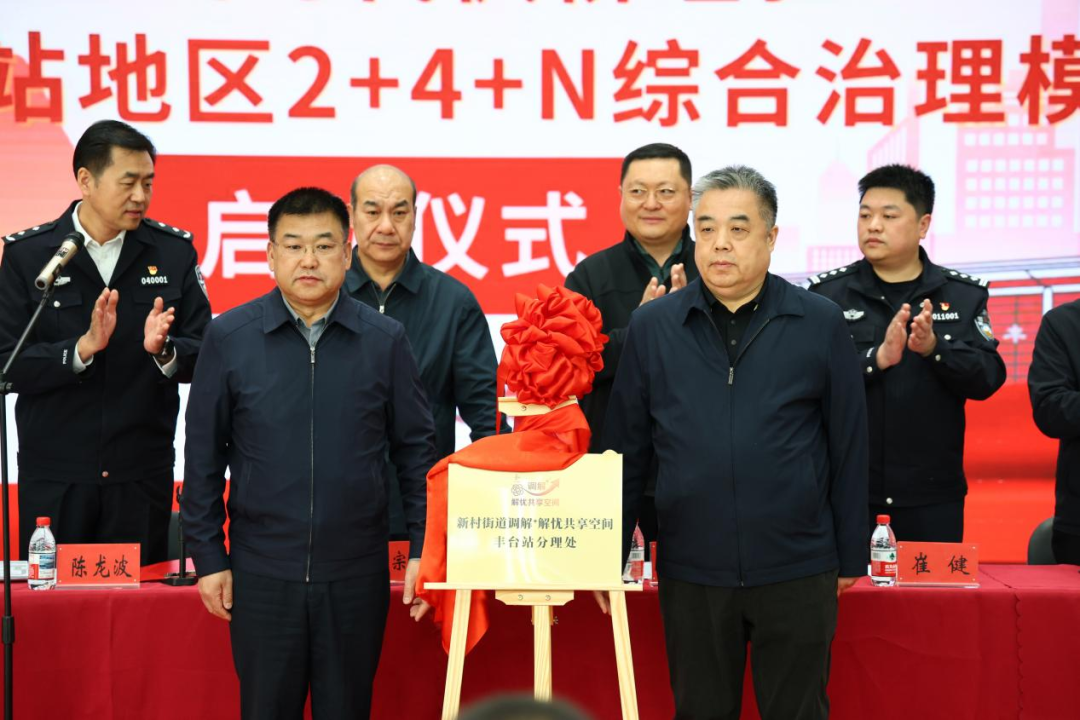 儀式上,“北京豐臺(tái)站地區(qū)協(xié)同治理聯(lián)盟”“北京豐臺(tái)站地區(qū)多警種聯(lián)動(dòng)執(zhí)法工作站”“新村街道調(diào)解+解憂共享空間豐臺(tái)站分理處”三個(gè)實(shí)體平臺(tái)正式揭牌。
