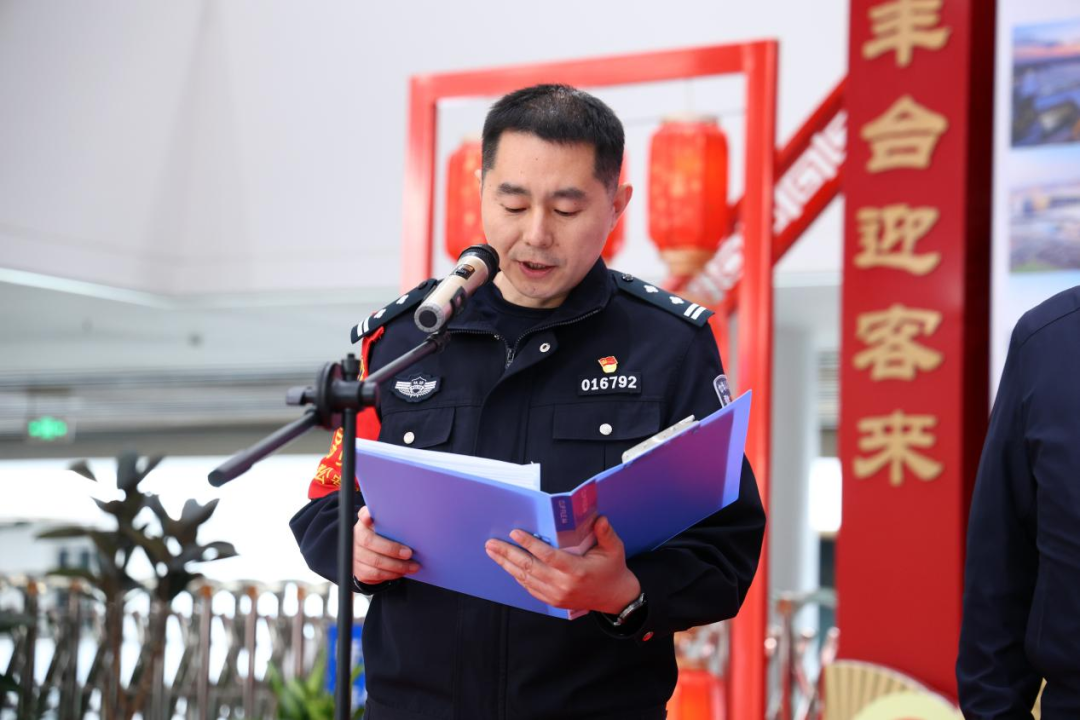 北京鐵路公安處北京豐臺(tái)站派出所政治教導(dǎo)員賈子庶、公交總隊(duì)石榴莊派出所所長楊東生分別發(fā)言,表示將密切協(xié)作,全力守護(hù)站區(qū)平安有序。