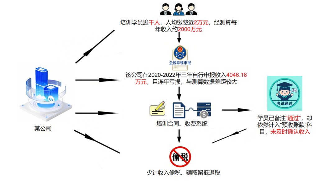 檢查人員通過(guò)公司報(bào)名收費(fèi)系統(tǒng)看到,名單中明明大量學(xué)員已備注“通過(guò)”,卻依然計(jì)在“預(yù)收賬款”科目,未及時(shí)確認(rèn)收入,同時(shí),企業(yè)仍對(duì)因未確認(rèn)收入形成的7.91萬(wàn)元增值稅留抵稅額申請(qǐng)退稅,存在騙取留抵退稅問(wèn)題。