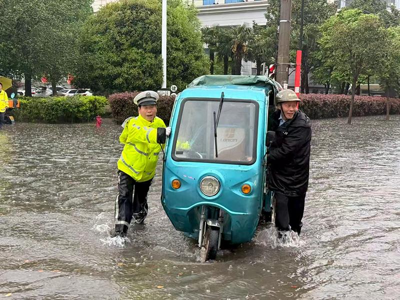 仙桃市公安局根據(jù)積水深度分級(jí)落實(shí)“警示、限行、封控”管理措施,民警輔警化身“推車俠”,冒雨救助拋錨車輛。4月9日上午,民警輔警在巡邏途中發(fā)現(xiàn)被大風(fēng)刮倒、橫在路面的樹木,迅速開展路面清障,保障轄區(qū)道路通行安全。
