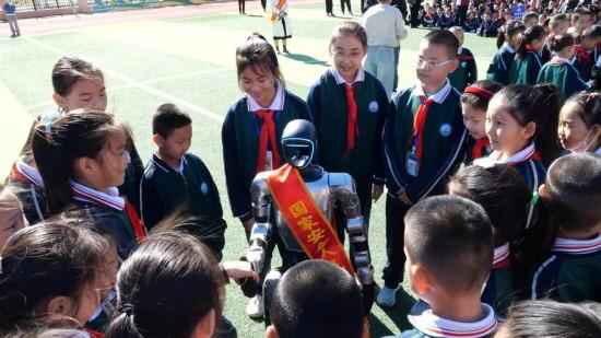圖為可克達拉市第一小學(xué)學(xué)生與機器人互動。 本報通訊員 許磊 攝