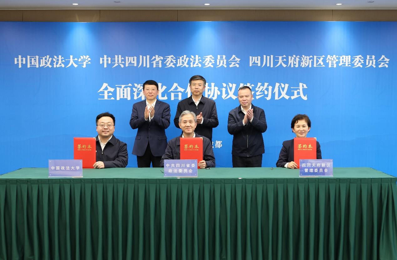 簽署《中共四川省委政法委員會 四川天府新區(qū)管理委員會 中國政法大學(xué)全面深化合作協(xié)議》。