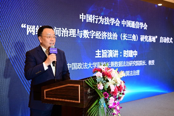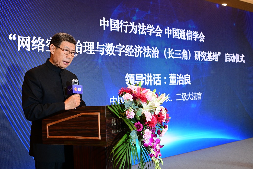 中國行為法學(xué)會會長董治良在致辭中指出,“網(wǎng)絡(luò)空間治理”和“數(shù)字經(jīng)濟(jì)法治”已是世界范圍內(nèi)的熱門關(guān)鍵詞之一。近年來,我國在網(wǎng)絡(luò)安全、數(shù)據(jù)安全領(lǐng)域立法取得了重大進(jìn)展,尤其是網(wǎng)絡(luò)安全法、數(shù)據(jù)安全法、個人信息保護(hù)法的頒布施行,標(biāo)志著我國網(wǎng)絡(luò)安全和數(shù)據(jù)保護(hù)的基礎(chǔ)性法律架構(gòu)已經(jīng)建立。相關(guān)的落實和細(xì)化基礎(chǔ)性法律的行政法規(guī)、地方性法規(guī)和政府規(guī)章還在制定過程中。可以說,我國數(shù)據(jù)安全保障能力在不斷提升,數(shù)據(jù)開發(fā)利用和產(chǎn)業(yè)發(fā)展得到法律的支持和保障,我國數(shù)據(jù)潛力即將得以極大釋放,產(chǎn)出巨量的經(jīng)濟(jì)成果。在這樣的大背景下,我們啟動成立“網(wǎng)絡(luò)空間治理與數(shù)字經(jīng)濟(jì)法治(長三角)研究基地”,以加強(qiáng)網(wǎng)絡(luò)治理與數(shù)字法治理論和實踐問題研究,可謂恰逢其時,意義重大。希望研究基地圍繞黨中央決策部署和國家戰(zhàn)略規(guī)劃,準(zhǔn)確對標(biāo)新時代的新要求,聚合國內(nèi)外優(yōu)勢科研力量,加強(qiáng)數(shù)字治理、數(shù)據(jù)確權(quán)、數(shù)據(jù)共享、數(shù)據(jù)開放、數(shù)字政府等領(lǐng)域的理論研究,撰寫高層次專題報告,努力形成一批有辨識度、有影響力又實效管用的數(shù)字法治研究成果,把研究基地辦成覆蓋長三角地區(qū)、服務(wù)全國的網(wǎng)絡(luò)治理與數(shù)字經(jīng)濟(jì)法治高端專業(yè)智庫。