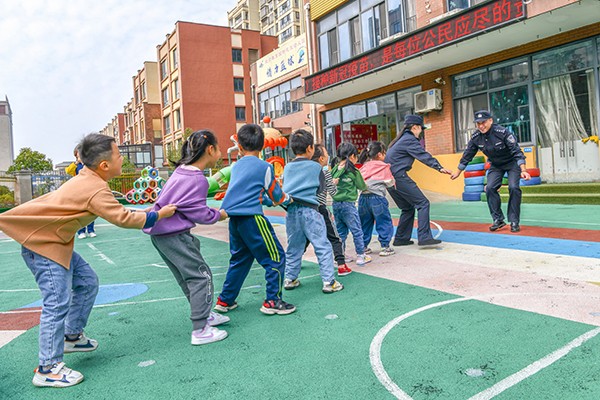 近年來,公安機關(guān)已選派30余萬名業(yè)務能力強、經(jīng)驗豐富的公安民警兼任法治副校長,深入學校組織開展形式多樣的安全教育活動。圖為安徽省涇縣公安局開發(fā)區(qū)派出所民警開展法治副校長進校園活動。 潘涯磊 攝