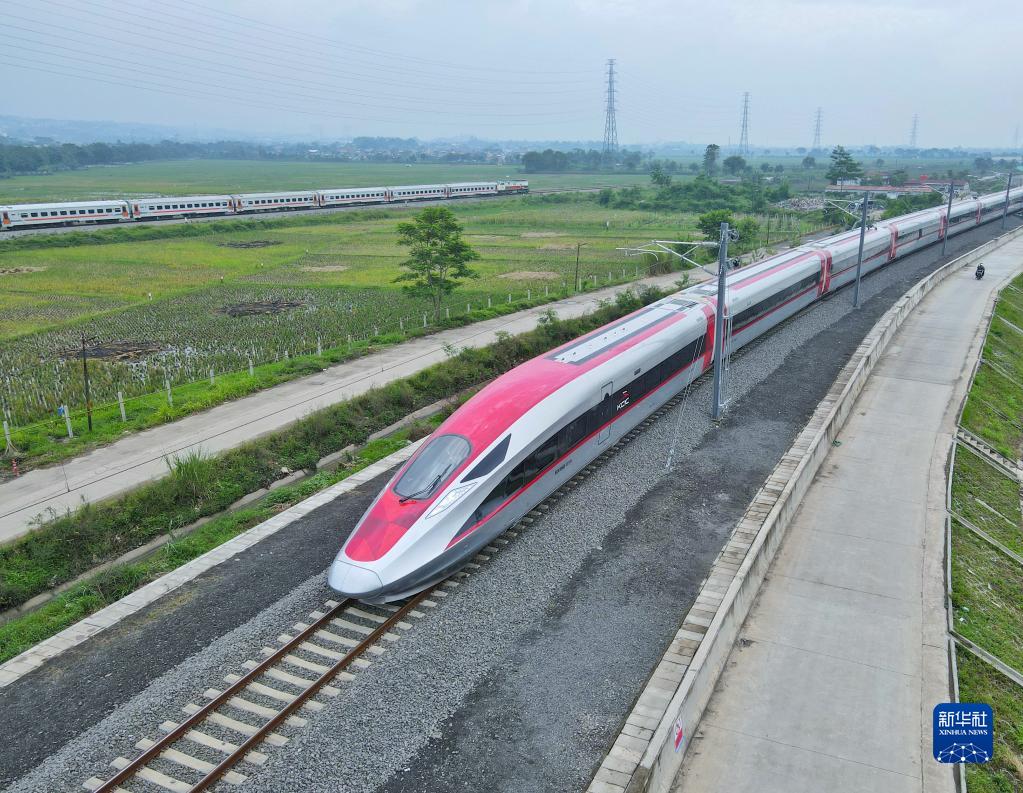 11月9日,印尼萬隆德卡魯爾車站。一輛帶有寶石紅涂色的高鐵列車緩緩啟動(dòng),標(biāo)志著雅萬高鐵試驗(yàn)段接觸網(wǎng)熱滑試驗(yàn)全面展開。雅萬高鐵項(xiàng)目自2016年正式啟動(dòng)以來,在兩國元首關(guān)心下順利推進(jìn),已成為共建“一帶一路”的標(biāo)志性項(xiàng)目。項(xiàng)目建成后,雅加達(dá)到萬隆的旅行時(shí)間將由現(xiàn)在的3個(gè)多小時(shí)縮短至40分鐘。