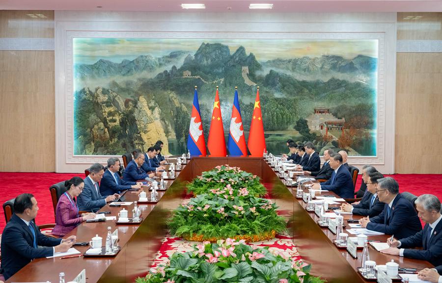 8月30日下午,國(guó)家主席習(xí)近平在天津迎賓館會(huì)見來華出席2025年上海合作組織峰會(huì)的柬埔寨首相洪瑪奈。新華社記者 翟健嵐 攝