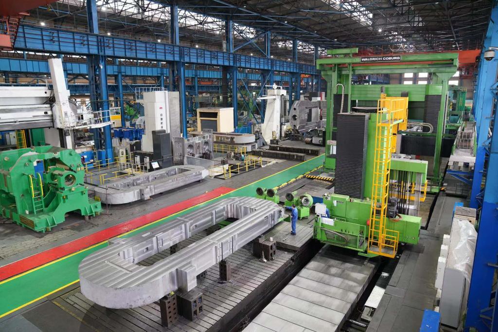 2021年7月,中國(guó)一重集團(tuán)有限公司重型裝備制造廠生產(chǎn)車間,工人在進(jìn)行生產(chǎn)作業(yè)。新華社記者 王建威 攝