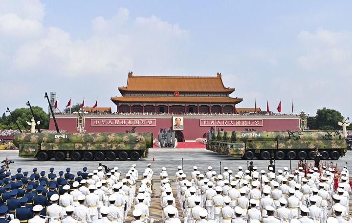 2025年9月3日,紀(jì)念中國人民抗日戰(zhàn)爭暨世界反法西斯戰(zhàn)爭勝利80周年大會在北京隆重舉行。這是核導(dǎo)彈第一方隊(duì)通過天安門廣場。新華社記者 李鑫 攝