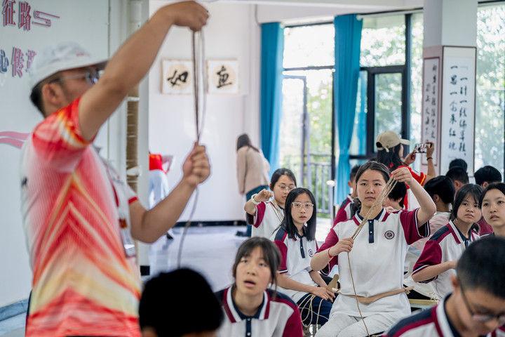 2025年5月12日,云南省昭通市威信縣第一中學(xué)學(xué)生在大屏上紅色研學(xué)實(shí)踐基地體驗(yàn)編織草鞋。200余名學(xué)生在紅色研學(xué)實(shí)踐基地親手編織草鞋、制作蠟染,并參觀了扎西會(huì)議舊址、紅軍長(zhǎng)征過(guò)云南情景體驗(yàn)館,在實(shí)踐互動(dòng)中重溫紅色革命歷史。威信縣立足紅色文化資源優(yōu)勢(shì),先后建成扎西會(huì)議紀(jì)念館、紅軍長(zhǎng)征標(biāo)語(yǔ)館等紅色文化展館,以舊址遺跡為“教室”,以文物史料為“教材”,設(shè)計(jì)開發(fā)多門精品研學(xué)課程和線路,在深入開展紅色研學(xué)系列活動(dòng)中傳承紅色基因。