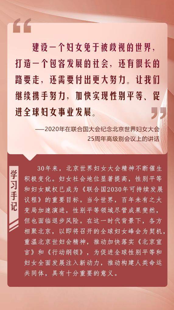 在全球婦女峰會(huì)即將舉行之際,我們重溫習(xí)近平總書(shū)記的重要論述,共同展望婦女發(fā)展的美好未來(lái),期待全球婦女事業(yè)發(fā)展譜寫(xiě)新的絢爛篇章。