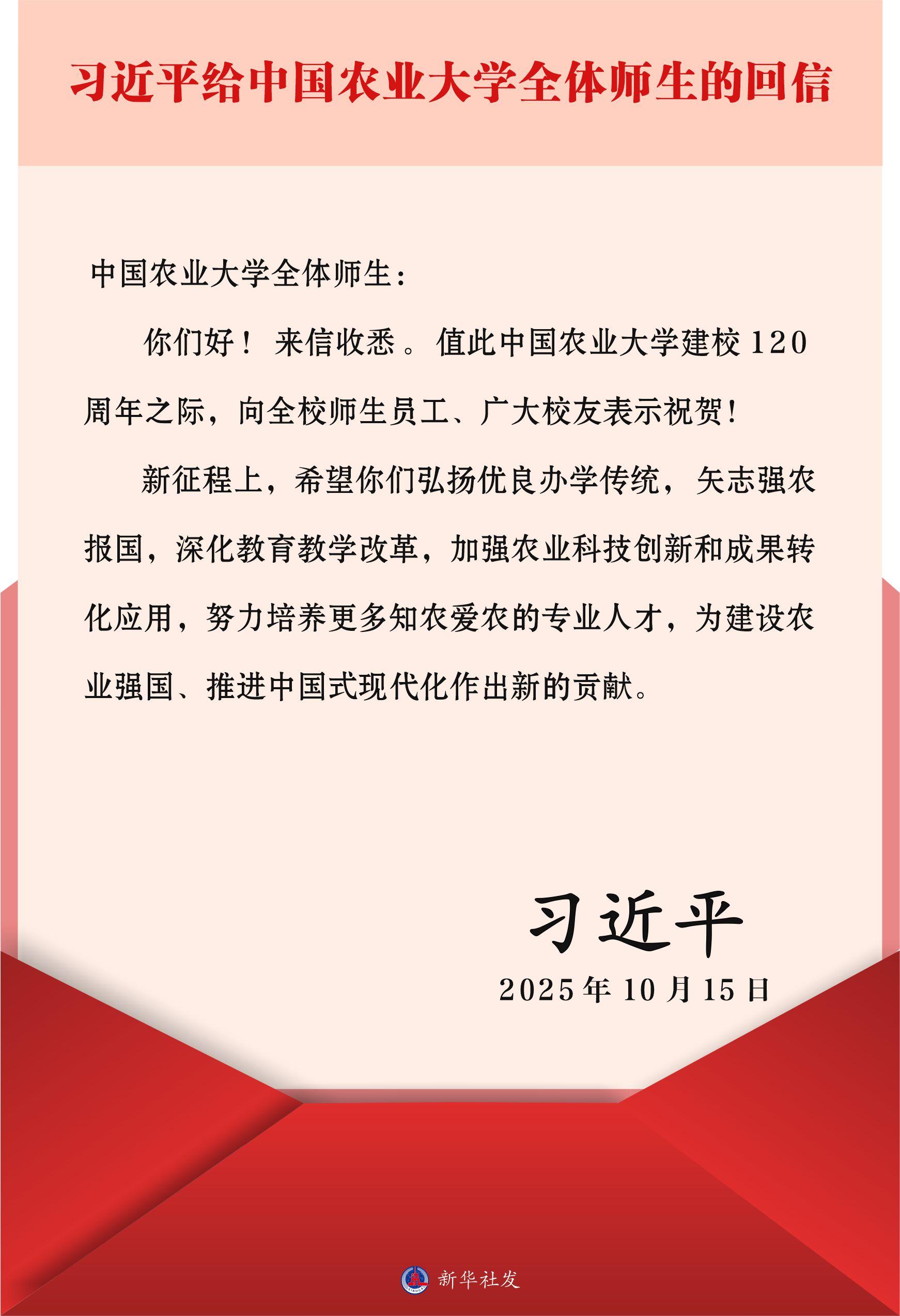 習(xí)近平給中國(guó)農(nóng)業(yè)大學(xué)全體師生的回信