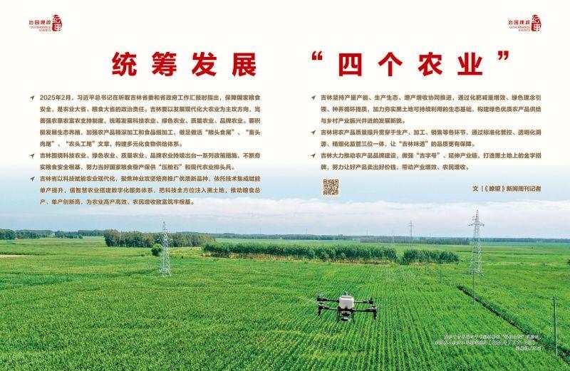 ◇2025年2月,習近平總書記在聽取吉林省委和省政府工作匯報時指出,保障國家糧食安全,是農(nóng)業(yè)大省、糧食大省的政治責任。吉林要以發(fā)展現(xiàn)代化大農(nóng)業(yè)為主攻方向,完善強農(nóng)惠農(nóng)富農(nóng)支持制度,統(tǒng)籌發(fā)展科技農(nóng)業(yè)、綠色農(nóng)業(yè)、質(zhì)量農(nóng)業(yè)、品牌農(nóng)業(yè)。要積極發(fā)展生態(tài)養(yǎng)殖,加強農(nóng)產(chǎn)品精深加工和食品細加工,做足做活“糧頭食尾”、“畜頭肉尾”、“農(nóng)頭工尾”文章,構建多元化食物供給體系。