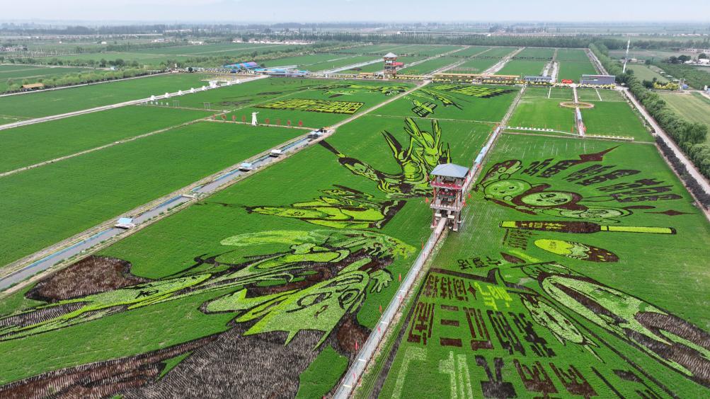 2025年6月18日,稻漁空間鄉(xiāng)村生態(tài)觀光園的巨幅稻田畫(無人機(jī)照片)。新華社記者王鵬 攝