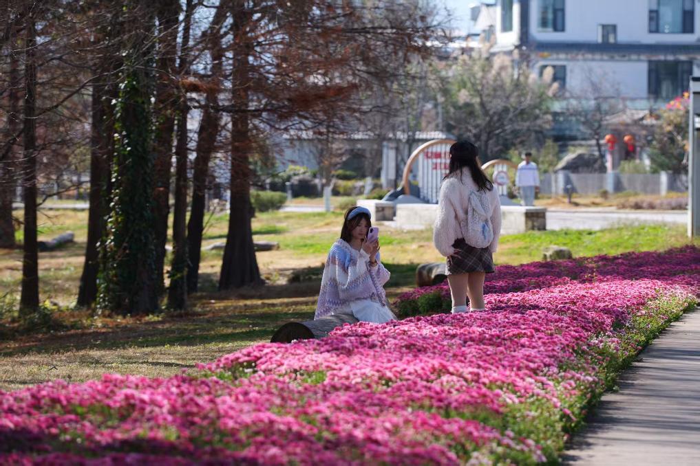 1月17日,游客在古生村生態(tài)廊道拍照留念。(趙志偉 攝)
