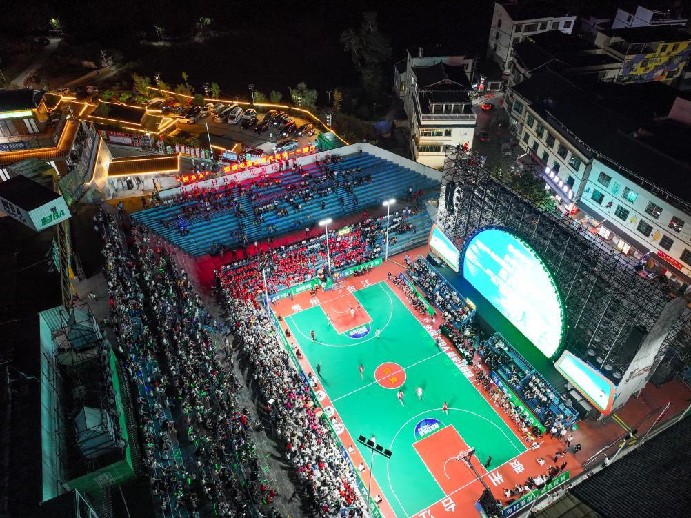 2025年10月12日,全國(guó)和美鄉(xiāng)村籃球大賽(“村BA”)總決賽在貴州省臺(tái)江縣臺(tái)盤村開(kāi)賽。新華社發(fā)(袁福洪攝)