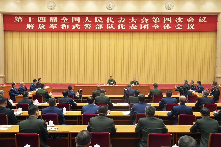 3月7日下午,中共中央總書(shū)記、國(guó)家主席、中央軍委主席習(xí)近平出席十四屆全國(guó)人大四次會(huì)議解放軍和武警部隊(duì)代表團(tuán)全體會(huì)議并發(fā)表重要講話。新華社記者 李剛 攝