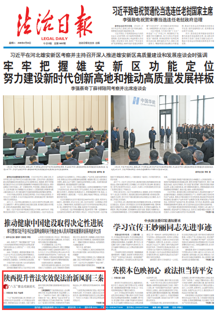 ——2021年以來,先后制定《陜西省法治社會(huì)建設(shè)實(shí)施方案(2021—2025年)》《關(guān)于加強(qiáng)社會(huì)主義法治文化建設(shè)的實(shí)施意見》等20余項(xiàng)配套文件,細(xì)化普法工作路徑,推進(jìn)新時(shí)代普法依法治理工作高質(zhì)量發(fā)展。