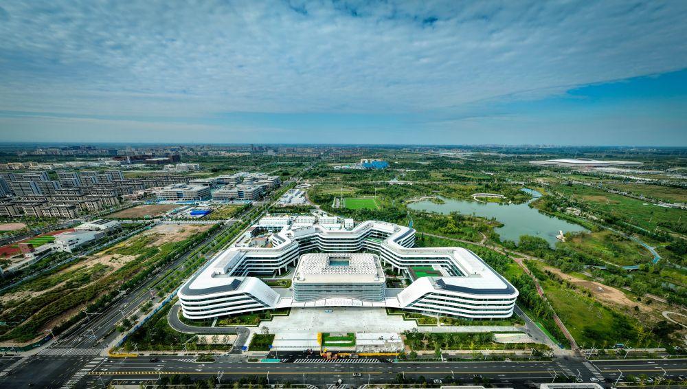 2023年6月30日,中共中央政治局召開會議,審議《關(guān)于支持高標準高質(zhì)量建設(shè)雄安新區(qū)若干政策措施的意見》。此后,一攬子特殊支持政策陸續(xù)落地雄安新區(qū)。2023年10月16日,雄安宣武醫(yī)院開診。首都醫(yī)科大學(xué)宣武醫(yī)院派來管理團隊及骨干醫(yī)生,重點服務(wù)疏解人員和新區(qū)群眾,并輻射京津冀地區(qū)。這是2023年9月30日拍攝的雄安宣武醫(yī)院(無人機照片)。