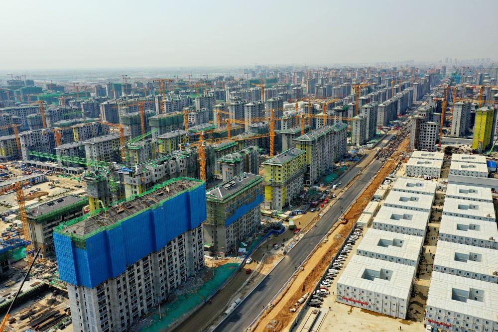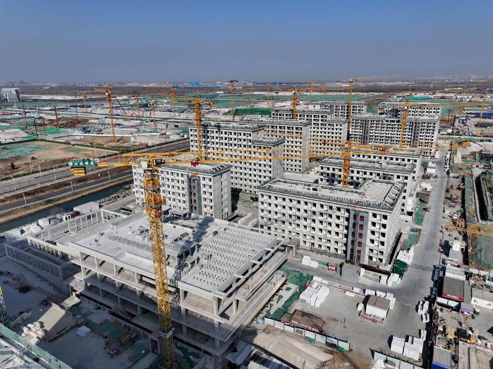 2021年是雄安新區(qū)大規(guī)模開發(fā)建設(shè)向縱深發(fā)展的關(guān)鍵一年。容東片區(qū)是雄安新區(qū)開發(fā)建設(shè)的先行區(qū)域,擔(dān)負著承接北京非首都功能疏解和安置回遷群眾的重要任務(wù)。這是2021年4月8日拍攝的雄安新區(qū)容東片區(qū)安置房項目建設(shè)現(xiàn)場(無人機照片)。2021年10月,容東第一批安置房開始交付。
