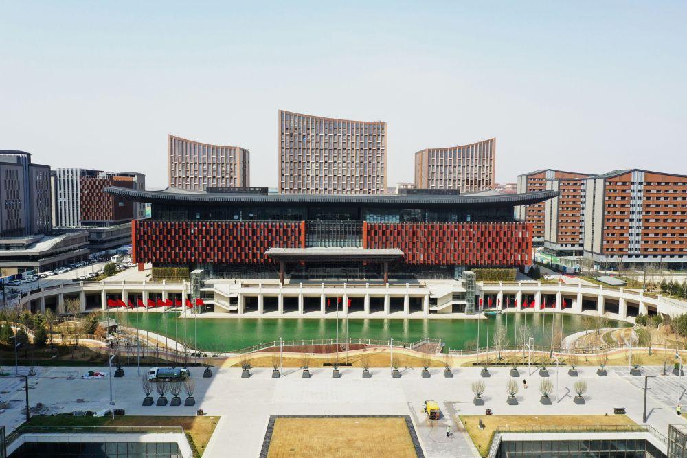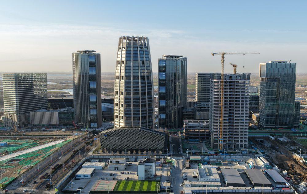 雄安商務(wù)服務(wù)中心是新區(qū)首個標志性城市建筑群,建筑風(fēng)格以東方美學(xué)立體展現(xiàn)雄安特色風(fēng)貌,功能包括酒店、專家公寓、商業(yè)等。2022年底,該中心投入使用。通過綠色建筑技術(shù)的集成與創(chuàng)新,這里實現(xiàn)了綠建三星標準全覆蓋,項目預(yù)計每年可節(jié)約用電1100萬度。這是2022年3月28日拍攝的雄安商務(wù)服務(wù)中心。
